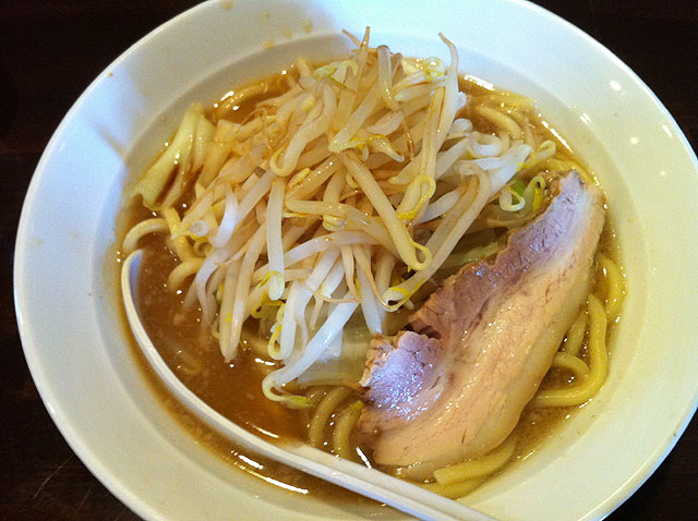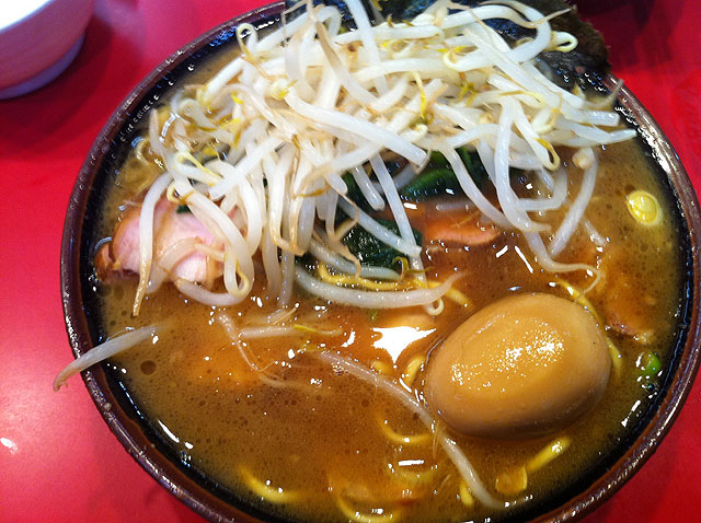 というわけで食いかけにもやしと味玉を投入したため、写真がイマイチですね。となりの人もつぶやいてましたが、思った以上に今日は味が濃い。でももやしが入ったら、却ってちょうど良くなりました。それにしても噛み切れない程歯ごたえのあるチャーシュー、美味いなぁ…