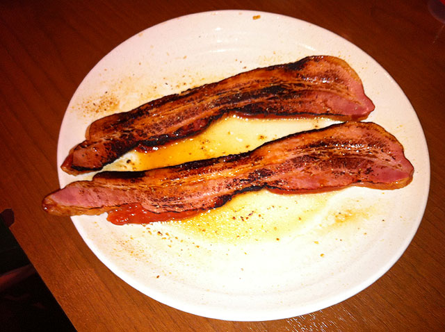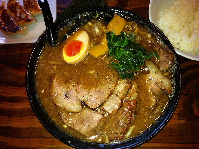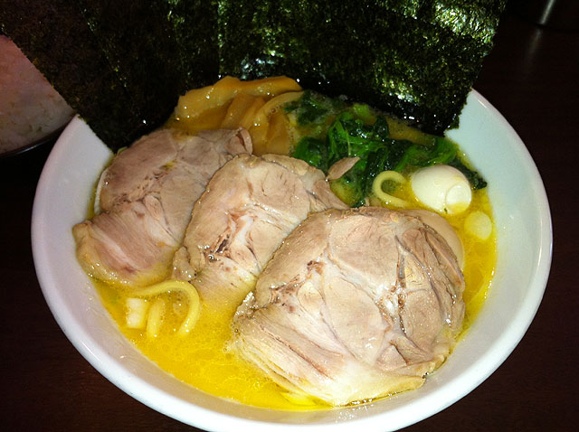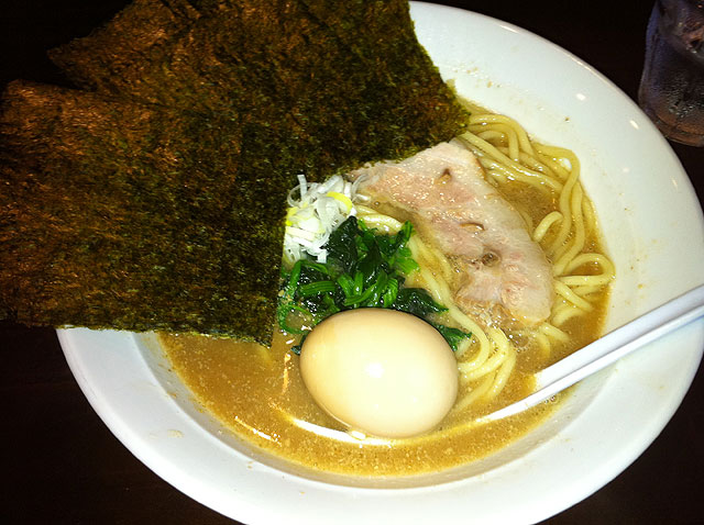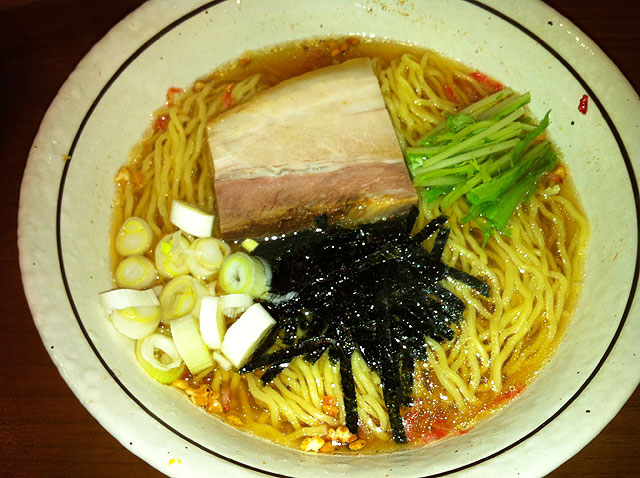 急に行ったのであまり期待していなかったけど、太麺だしチャーシューがおいしそう!実際に食べても歯ごたえのあるチャーシューはスペアリブを食べているようでした。鰹節の利いたスープもなかなか良かったですが、脂が多くてちょっと合わない感じがしました。でもメンマも極太で総合的には美味かったです。