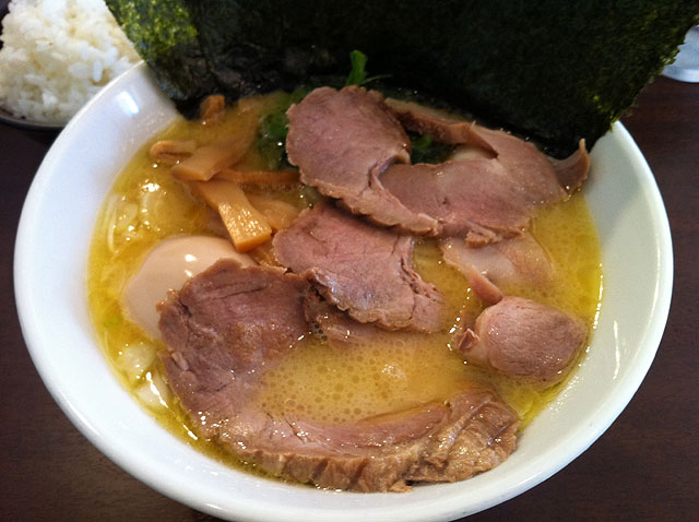 かつての龍王のいいところは、とんこつベースの「醤油・味噌・塩」が楽しめるというのが大きなウリのひとつだったのに、醤油に一本化されてました。で結局注文は、特製チャーシュー麺¥850+ライス¥100。前回の記事を辿れば、白髪ネギが有料とありますが、今回は無料。しかしこれまた龍王のウリだった、メンマ・ネギ・もやし・コーンなどのトッピング入れ放題も無くなり、魅力が全くありません。