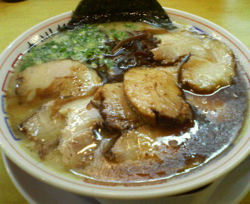 どうやら柳屋系列のお店のようで、スープは通常の豚骨の白、それににんにく油の加わった黒、さらに、豚骨+魚介スープの柳魂があり、それぞれ塩ベース、醤油ベースがありましたが、黒の塩をチョイス。黒炭火肉盛ラーメン¥850を注文。実はあまり期待していなかったのだが、結構美味いので替玉¥150を追加。替玉のハリガネは程よい硬さでうまかった。謳い文句どおりパンチが効いたスープにとろ~りボリュームのあるチャーシュー。かなり胃にきました。美味しかったので、醤油ベースやWスープも気になるな。