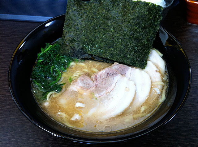 注文は、豚骨醤油ラーメン¥590+半ライス¥100。今日は硬め濃めで注文。つけめんも選べるようで、麺は極太です。濃い目にすると麺の太さに負けずちょうどいいですが、あまりに味のないチャーシューにびっくり。スープと一緒に食べないと物足りないですが、全体的にはおいしかったのでまた注文したいです。