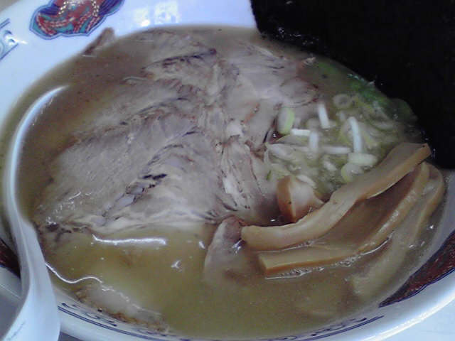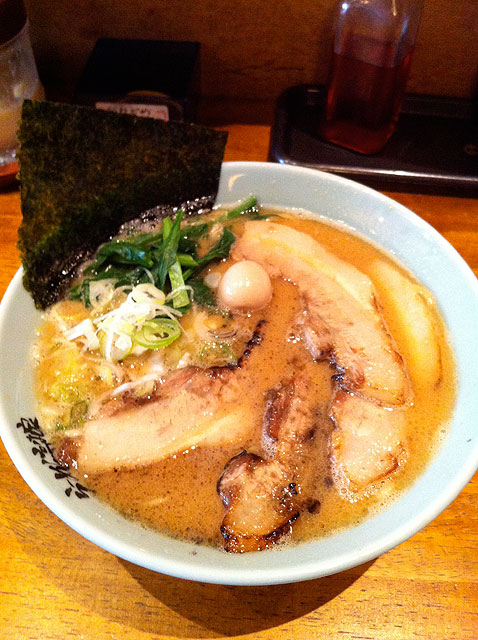 を見つけて駐車。地図を見ながら歩いて店を探す。やっぱiPhone便利だわ。ふらっと拉麺屋行くのにわざわざ地図を印刷してられませんからね。注文は、チャーシュー麺¥850。こってりスープは魚介系であまり食べた事の無い味でしっかり味がしており、つるつる太麺とマッチしていましたが、塗り箸で食べるのはチト大変でした。チャーシューは豚トロでかなり重いので、次回は普通のラーメンでいいかなと。もう若くないです。
