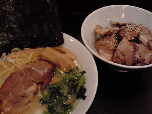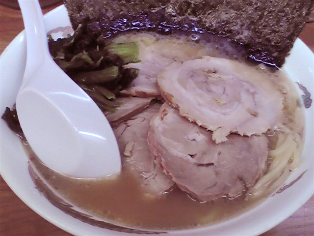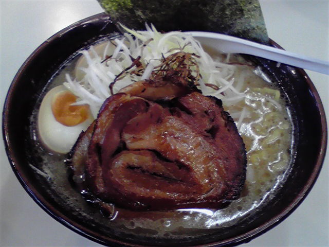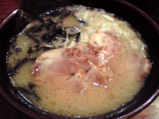 飲んだ後だというのに、写真でおいしそうだった塩チャーシュー麺¥900を注文。やりすぎか? メニューに博多豚骨はあるけどこちらは平打ち麺。チャーシューも悪くはない。あまりこってりではないので飲んだ後にはいいけど、普段だったら物足りないかな。